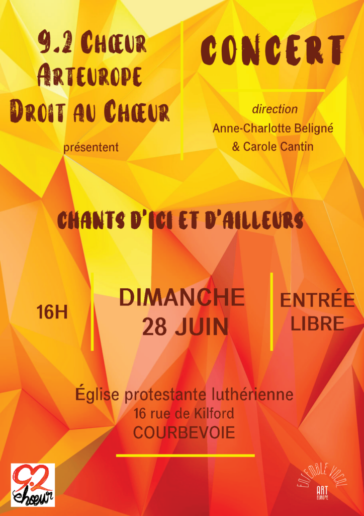 9.2 Choeur, Arteurope, Droit au Choeur présentent "Chants d’ici et d’ailleurs" sous la direction d'Anne-Charlotte Beligné et Carole Cantin
