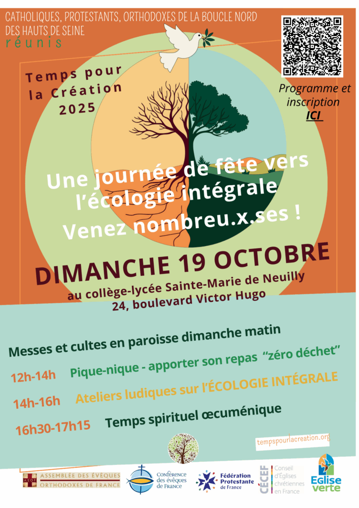Les groupe locaux Eglise verte de notre secteur sont invités à un grand après-midi oecuménique et écologique à Neuilly le dimanche 19 octobre